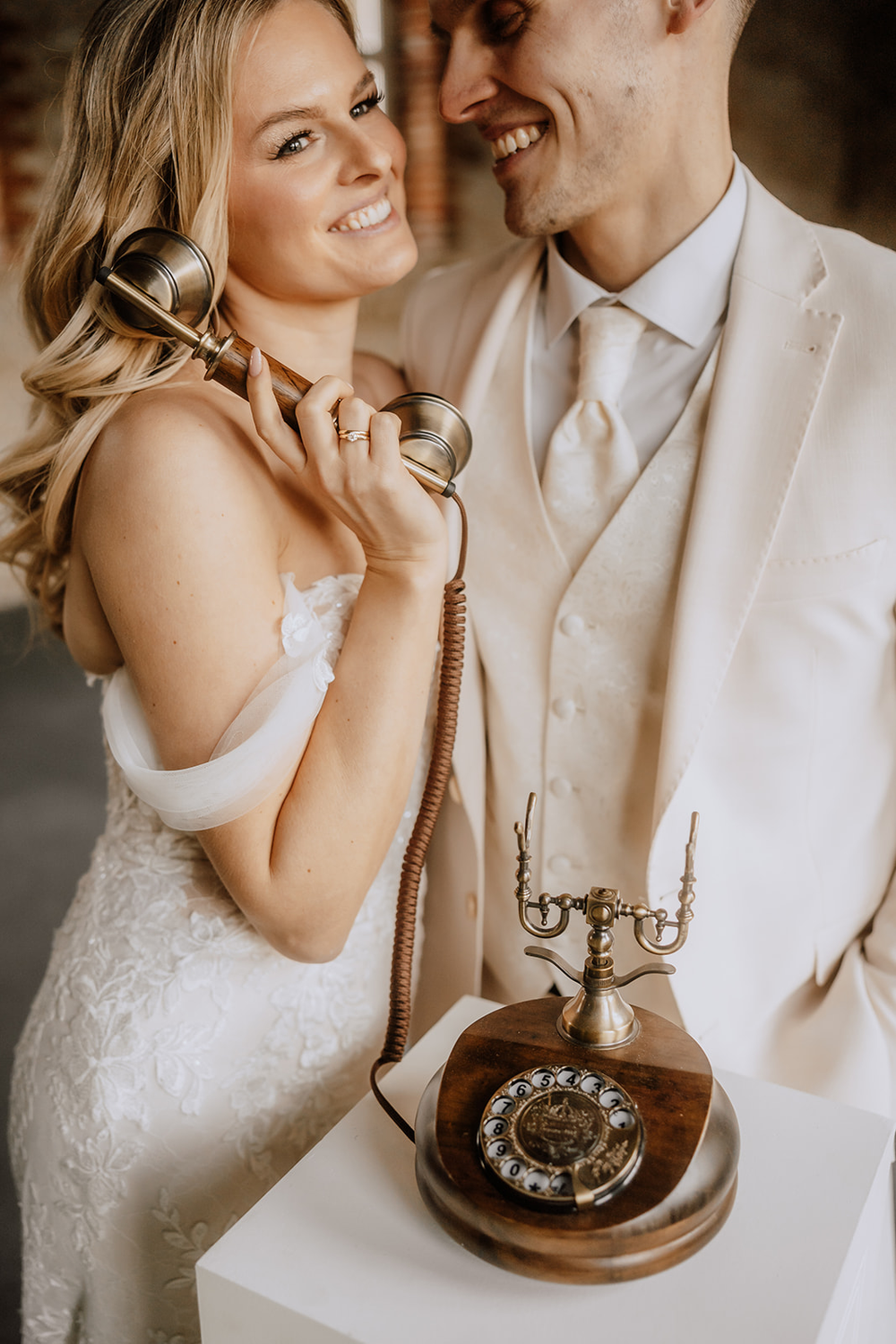 Mit unserem wunderschönen und technisch brillant ausgestatteten Gästetelefon “Oscar” können Euch eure Gäste über die gesamte Feier hinweg Grußbotschaften aufnehmen. So erhaltet ihr emotionale, witzige und authentische Grußnachrichten, die von Herzen kommen!