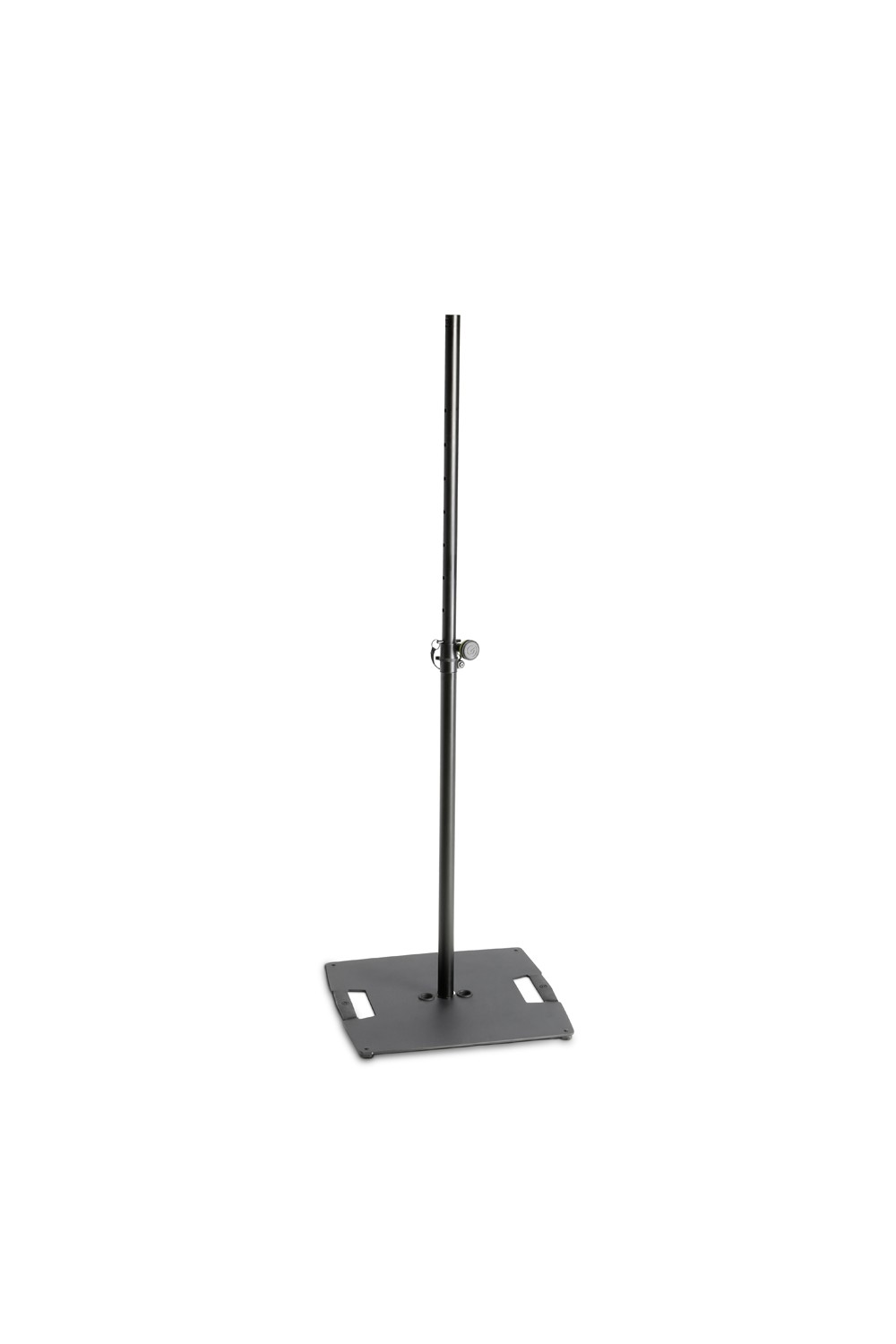 Stabiles Stativ mit quadratischer Stahlbase und verstellbarem Aluminium-Teleskoprohr (1,42–2,42 m) – passend für Scheinwerfer oder Lautsprecher.