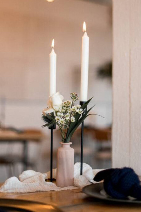 Miete den Stabkerzenhalter zur Selbstabholung oder lass ihn dir direkt an deine Eventlocation liefern — eine einfache und elegante Lösung für stimmungsvolle Lichtgestaltung.